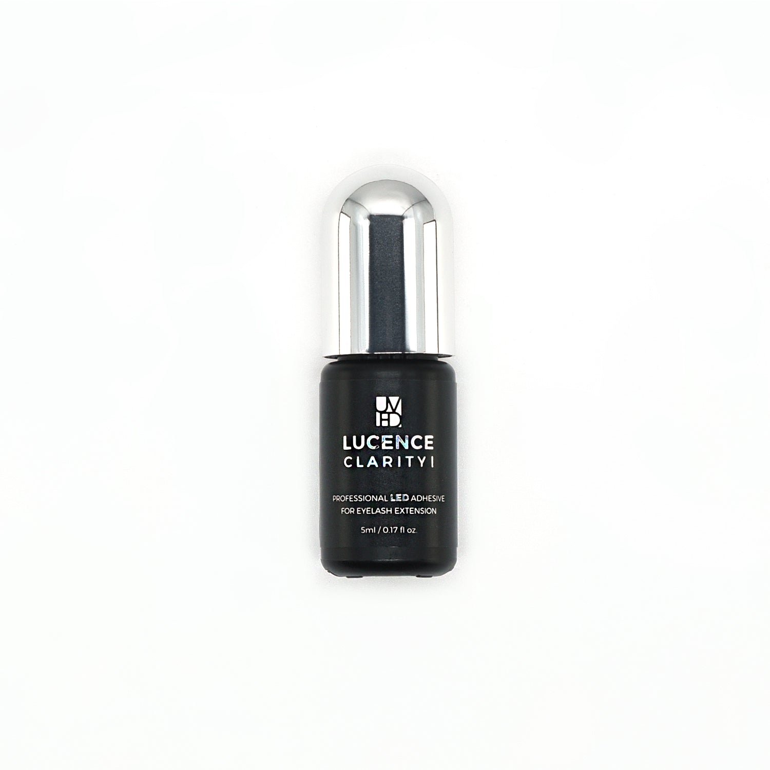 Professional LED adhesive for eyelash extensions. 5ml / 0.17 fl oz. Our CLEAR adhesive solution. This formulation is your best choice for working with premade fans. A tad bit thicker in viscosity than our black formulation. Superior strength and fast curing. *Highly recommended if using premade fans.