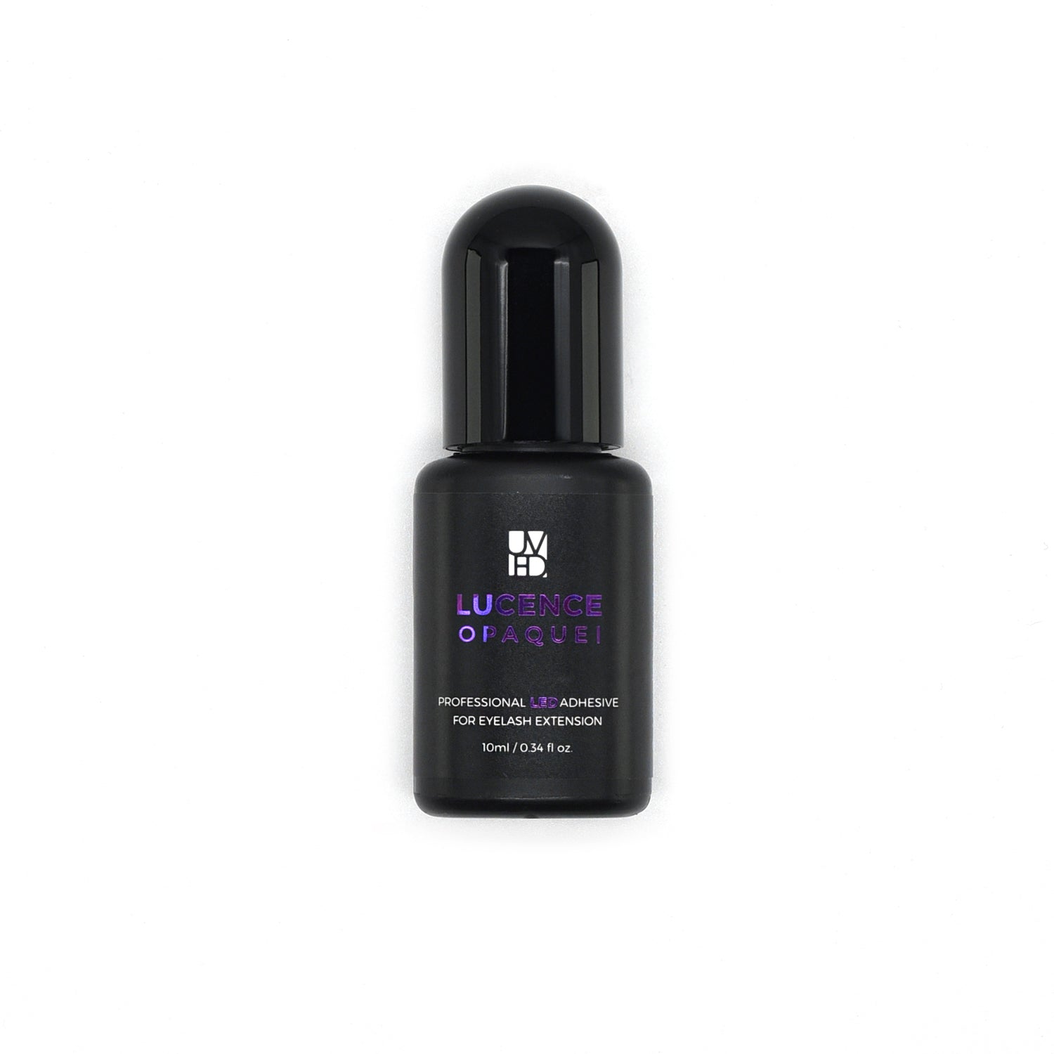 Professional adhesive for eyelash extensions, 5ml / 0.17 fl oz. Black. Choose Opaque I adhesive for a seamless look with your black lash extensions. Works great for Classic, Wet Look, Volume, or any style lashing. Thin viscosity. Superior hold and very fast cure with our LUCENCE LED Light.